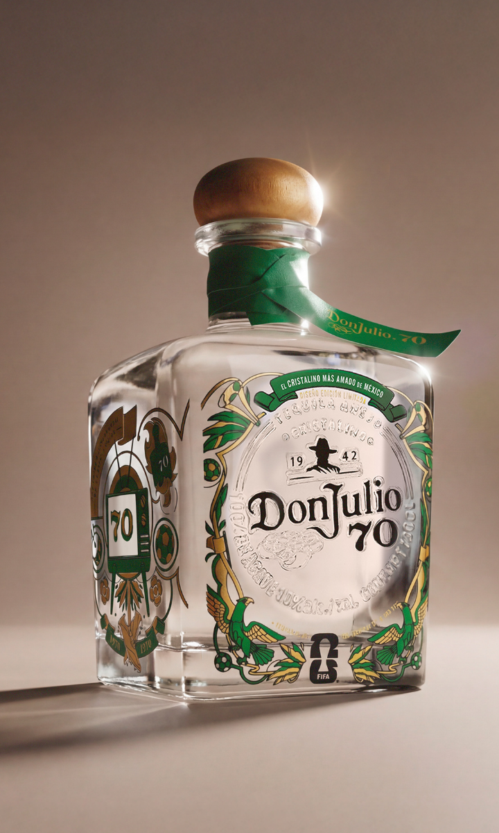 Entre las piezas más evocadoras de la colección aparece la edición especial de Don Julio, que mira directamente al pasado para recordar por qué México tiene una relación tan particular con la historia de los mundiales.