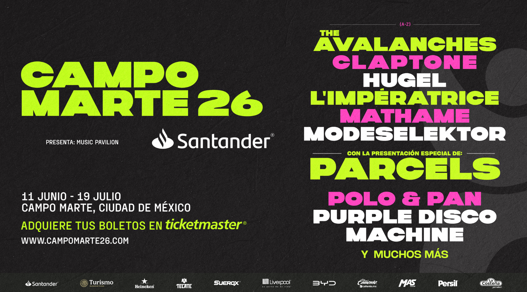 Durante el verano de 2026, Ciudad de México será uno de los destinos clave para los aficionados al fútbol. En ese contexto, Campo Marte 26 Santander propone un formato que combina deporte, entretenimiento y cultura en un solo espacio. El festival contará con una pantalla gigante para transmitir partidos en vivo, creando un ambiente colectivo en el cual miles de personas podrán reunirse para seguir los encuentros mientras disfrutan de música, gastronomía y actividades culturales.