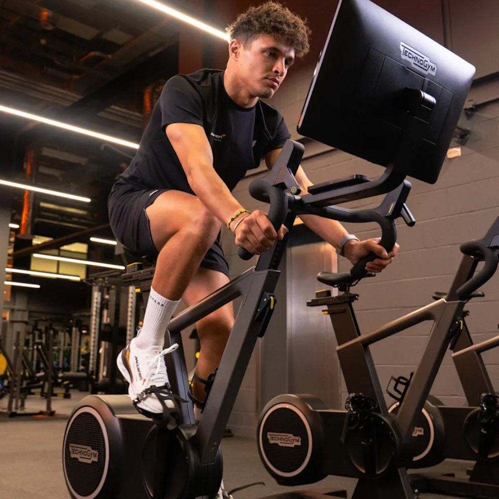 Uno de los aspectos más importantes del entrenamiento moderno en Formula 1 es que todo comienza con mediciones. Antes de diseñar cualquier rutina, el equipo analiza métricas físicas para entender cómo responde cada persona al esfuerzo. En el centro de entrenamiento de McLaren se utiliza una herramienta llamada Technogym Checkup, un sistema de evaluación basado en inteligencia artificial que analiza variables como composición corporal, equilibrio, movilidad y capacidades cognitivas. Toda esta información se integra en un ecosistema digital que permite diseñar sesiones personalizadas para cada miembro del equipo.