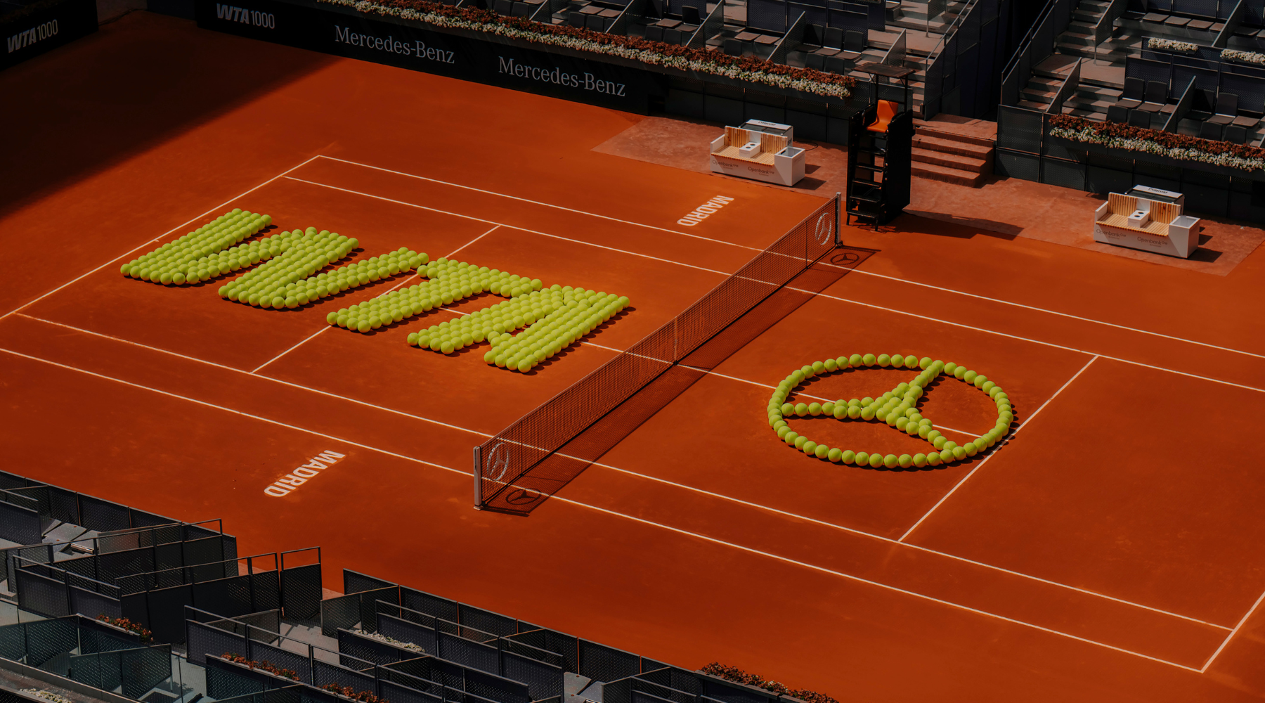 Como parte de su alianza con la WTA, Mercedes-Benz montó una instalación gigante con pelotas de tenis en la cancha central del Mutua Madrid Open