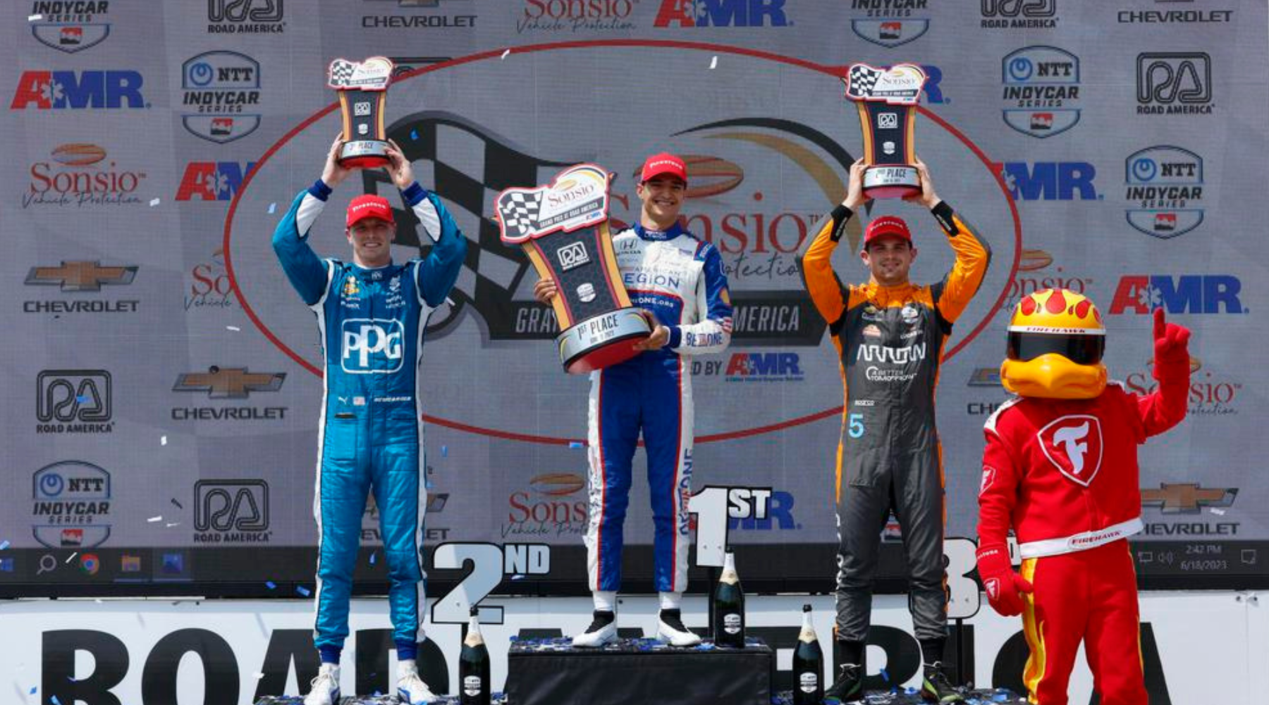 El piloto Alex Palou registró la velocidad máxima durante el Gran Premio de Sonsio en Road America presentado por AMR logrando su tercera victoria en la categoría NTT IndyCar; este triunfo lo obtuvo a 4.5610 segundos sobre Josef Newgarden –ganador de las 500 Millas de Indianápolis– mientras que el mexicano Patricio ‘Pato’ O’Ward se les unió en el podio logrando el tercer lugar y su cuarto podio en esta temporada. “Ha sido un fin de semana increíble”, dijo Palou. “Estoy muy feliz [...] fue un día increíble para American Legion Ganassi, y vamos a seguir así”.